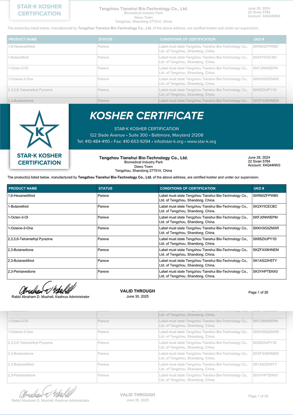 滕州市天水生物科技有限公司成立于2011年9月,是目前國內雜環類合成食品香料、日化香料和醫藥中間體生產經營的綜合性企業。坐落于山東省滕州市生物醫藥產業基地,總投資5000余萬元,占地面積約30000平方米,員工百余人。公司先后被評為高新技術企業、專精特新中小企業、科技型中小企業,建有市級重點實驗室1處,并先后獲得ISO9001質量體系認證、ISO22000食品安全體系認證、kosher認證和Halal認證。是香精香料及食品配料協會會員單位及滕州市中小企業協會理事單位。